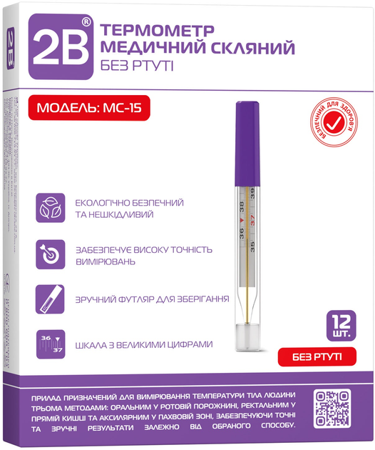Медичні термометри зберігаються в пластикових футлярах, які забезпечують їх захист і зручність у використанні. Футляри в свою чергу упаковані в упаковки по 12 штук, що створює комфортні умови для зберігання та транспортування. Такий формат пакування ідеально підходить як для медичних закладів, так і для оптових закупівель.