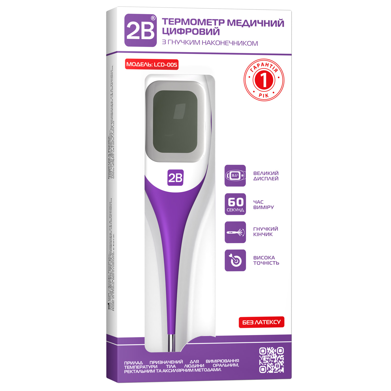 Термометр медичний цифровий LCD-005 з гнучким наконечником створений для швидкого та точного вимірювання температури тіла людини. Він підходить для вимірювання як у ротовій порожнині (оральним методом), під пахвою (аксилярним), так і ректально (у прямій кишці). Відсутність ртуті робить прилад абсолютно безпечним для користувачів та навколишнього середовища. Головною перевагою є великий рідкокристалічний дисплей із чітким шрифтом, що дозволяє легко зчитувати результат та робить його зручним для всіх. Термометр успішно пройшов клінічні випробування, має високу точність вимірювань та відповідає вимогам європейських і українських стандартів, тому його можна використовувати як у медичних закладах, так і вдома.