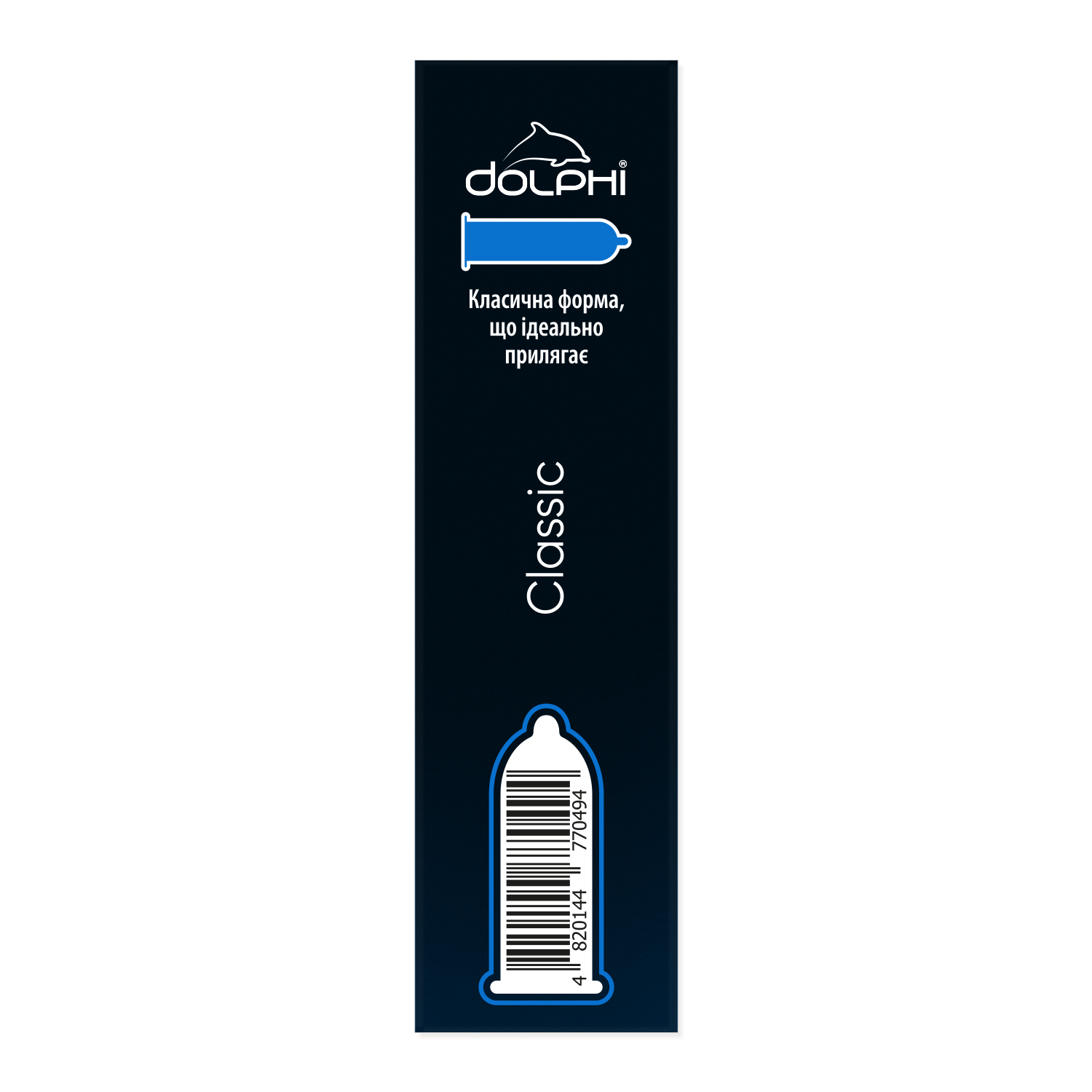 - DOLPHI Classic мають класичну форму з гладкою поверхнею, класичну довжину 180(+/-2) мм, ширину 52 (+/-) мм та товщину латексу 0,06 мм.