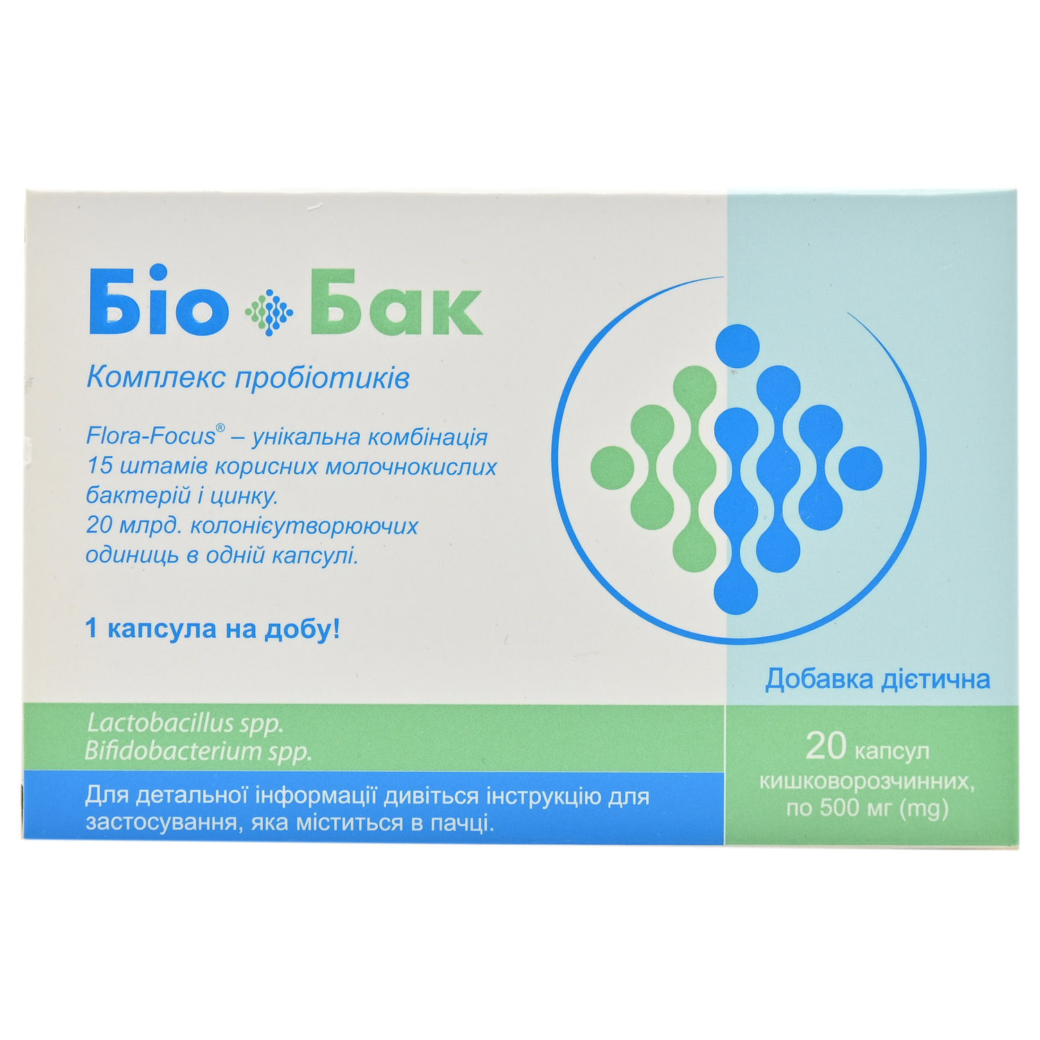 Комплекс пробіотиків БІО-БАК завдяки унікальній комбінації Flora-Focus® з 15 штамів корисних молочнокислих бактерій і цинку відновлює та підтримує оптимальний стан кишкової мікрофлори, сприяє зменшенню кількості шкідливих патогенних та умовно-патогенних мікроорганізмів, сприяє зміцненню імунної системи та нормалізації травлення. Цинк сприяє зміцненню імунітету, підтримує когнітивну функцію, фертильність та репродуктивне здоров’я, нормалізує кислотно-основну рівновагу, рівень макронутрієнтів, жирних кислот та метаболізм вітаміну А. Цинк допомагає підтримувати нормальний синтез ДНК та білку, підтримує здоров’я кісткової системи, нігтів, волосся та шкіри.
