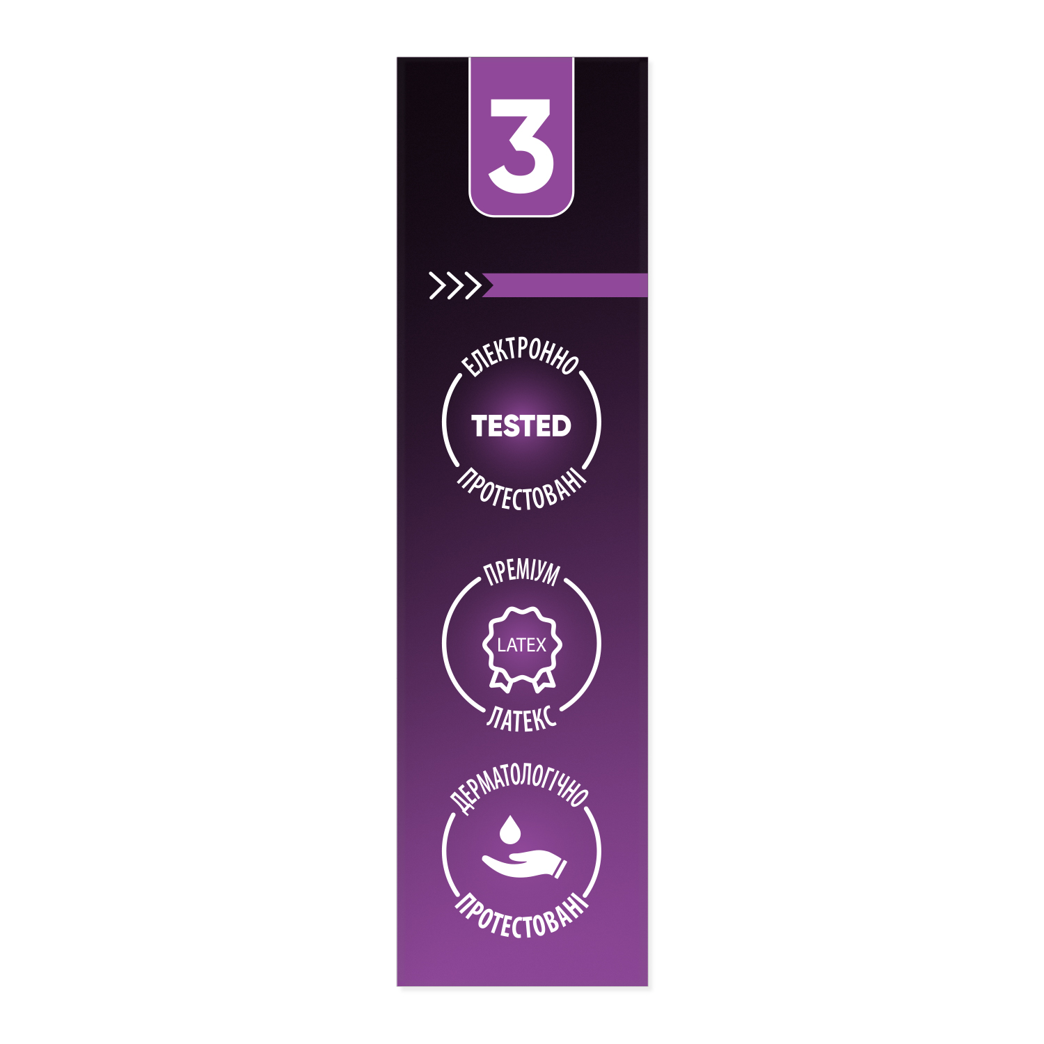 Протипоказання та запобіжні заходи: презервативи виготовлені з натурального латексу, що в деяких випадках може викликати алергічну реакцію, включаючи анафілактичний шок.