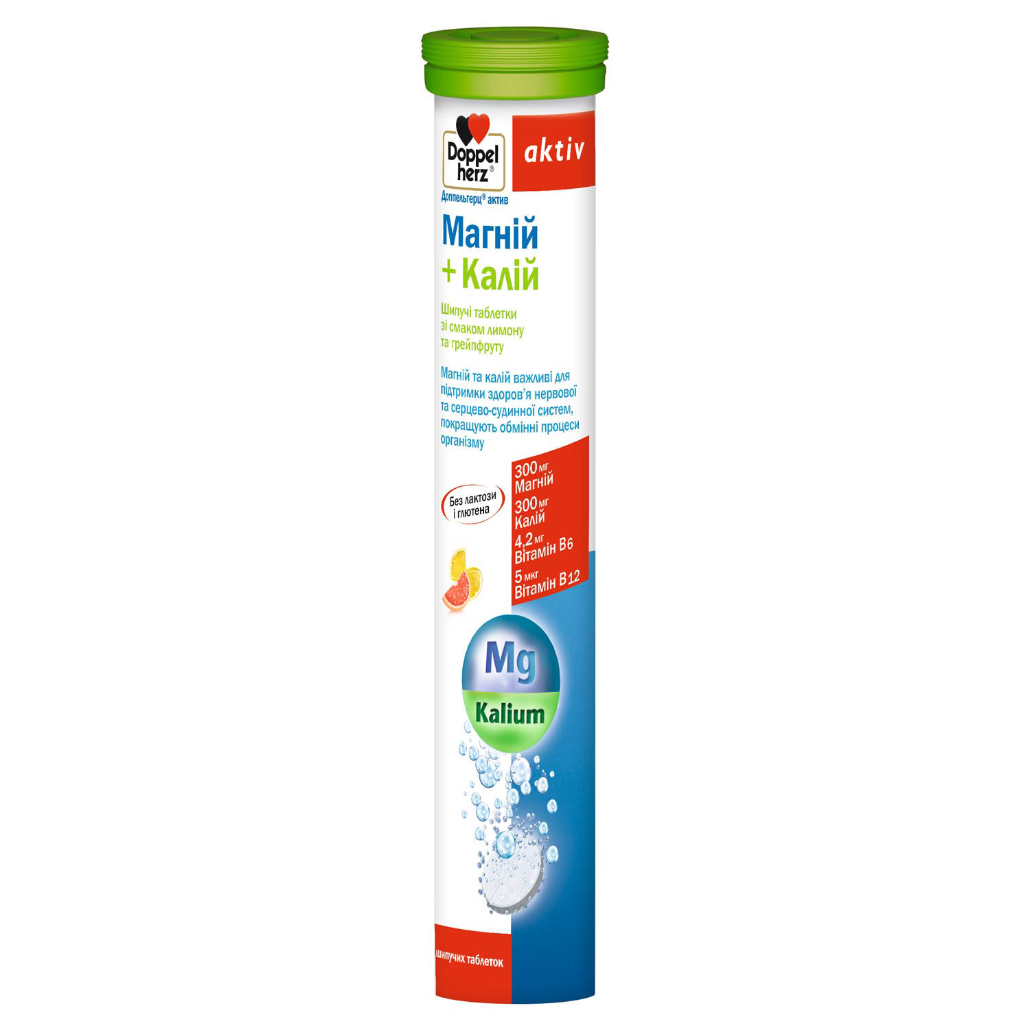 Активні інгредієнти: Магній - 300 mg(мг), Калій - 300 mg(мг), Вітамін В6 - 4,2 mg(мг), Вітамін В12 - 5,0 µg(мкг).