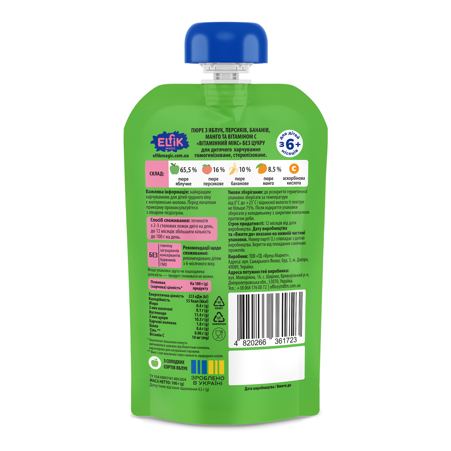 Пюре фруктове Elfik Magic Вітамінний мікс, 100 г
