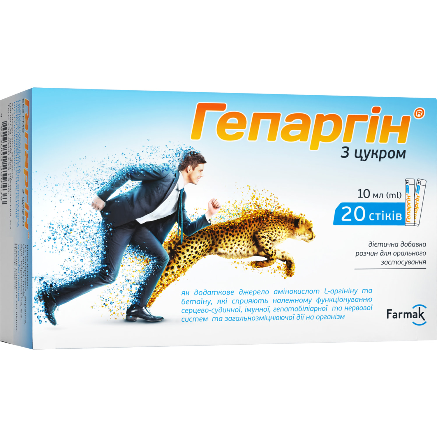 Гепаргін® є джерелом амінокислот L-аргініну та бетаїну, що проявляють кардіопротекторну, антигіпоксичну, нейропротекторну, цитопротекторну, загальнозміцнюючу, гепатопротекторну, протиастенічну та детоксикуючу дію на організм.