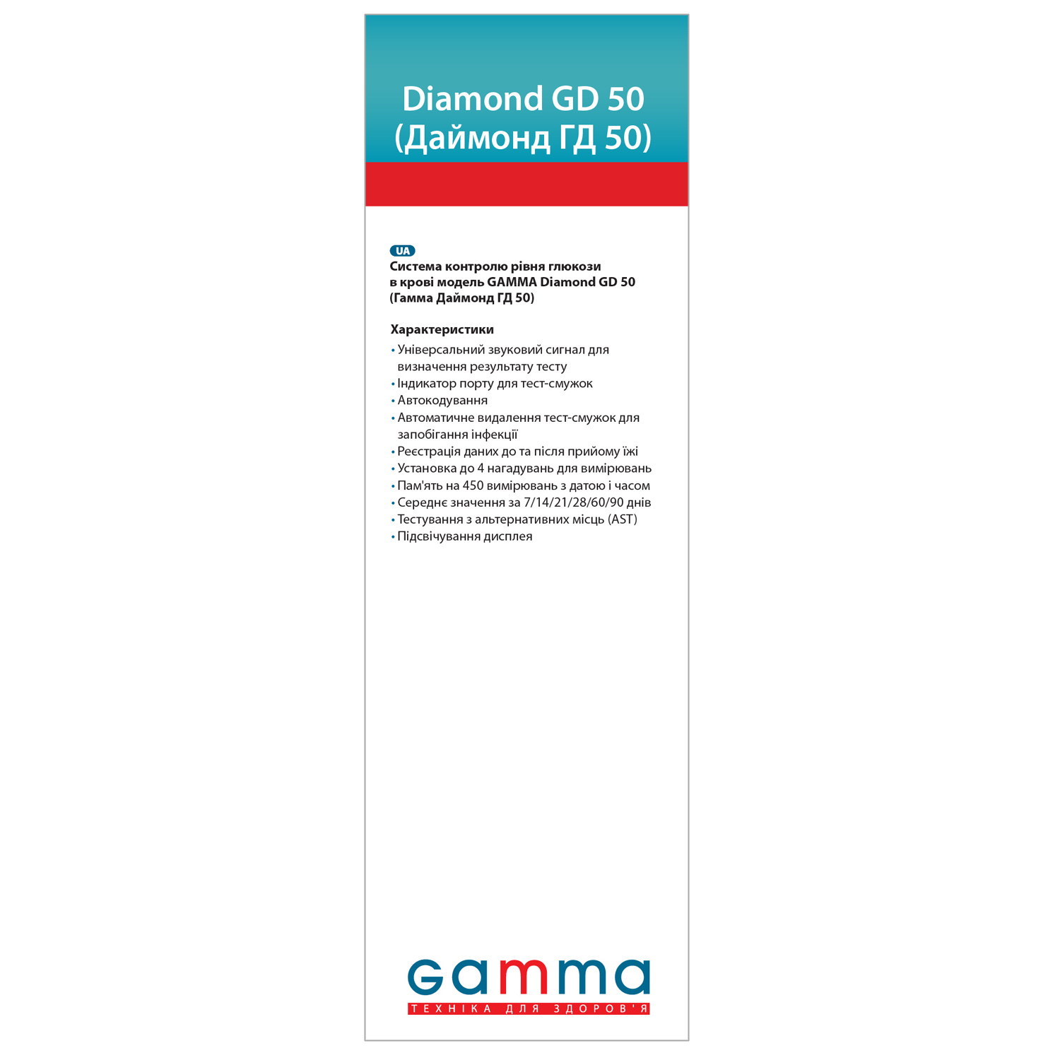 - Безстрокова гарантія на глюкометр TM GAMMA Diamond GD 50