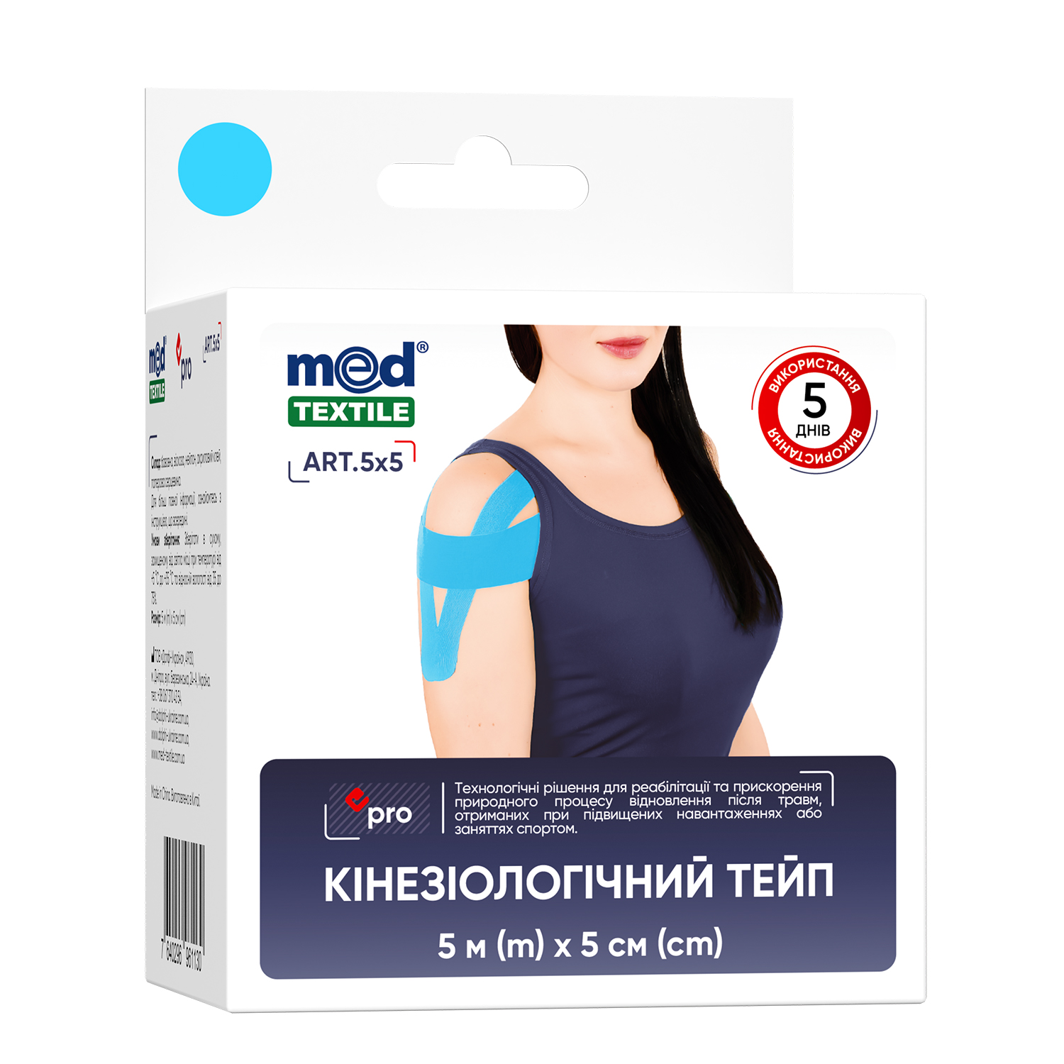 - Завдяки еластичності, близькій до еластичності шкіри людини, кінезіологічний тейп розтягується до 160%, забезпечуючи динамічну підтримку без сковування рухів.
