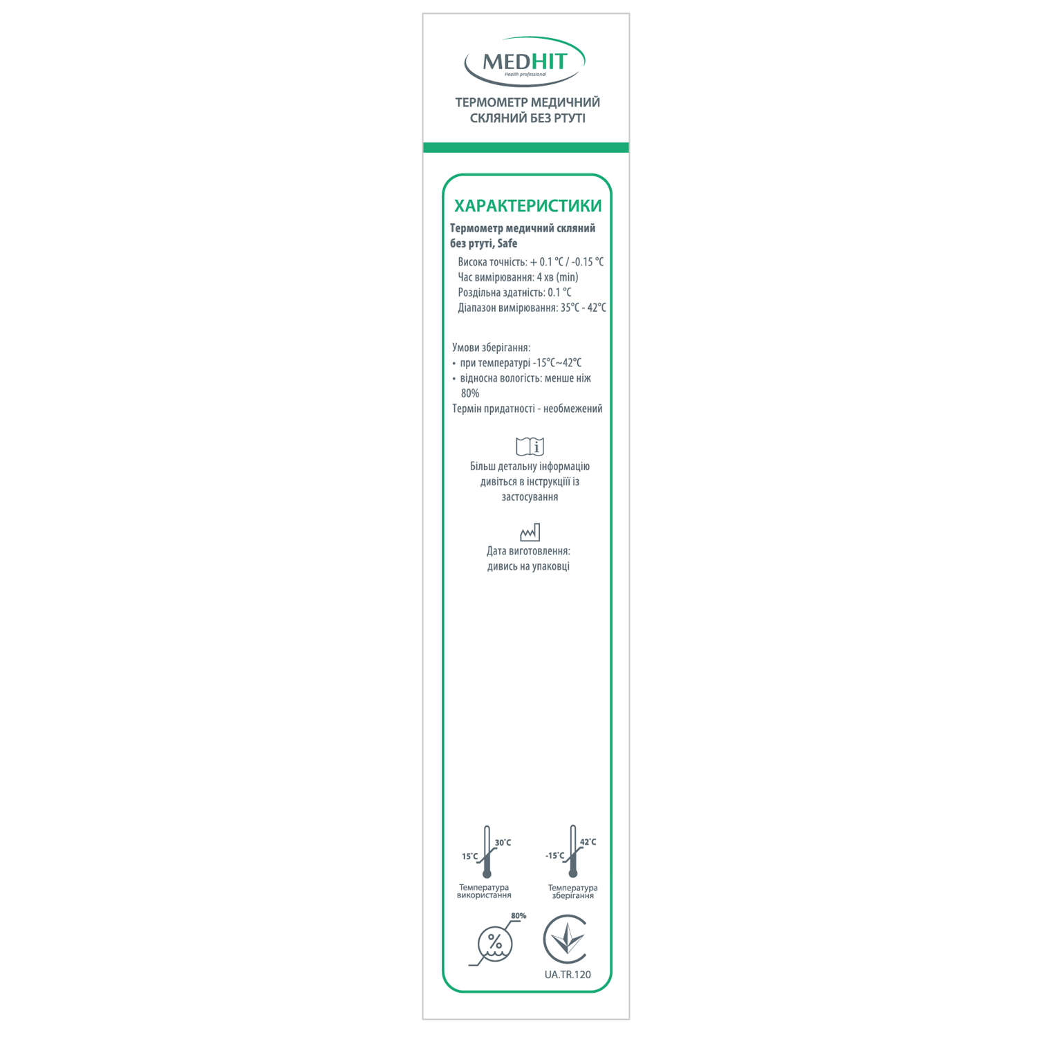 MedHit, Термометр медичний скляний без ртуті, Safe