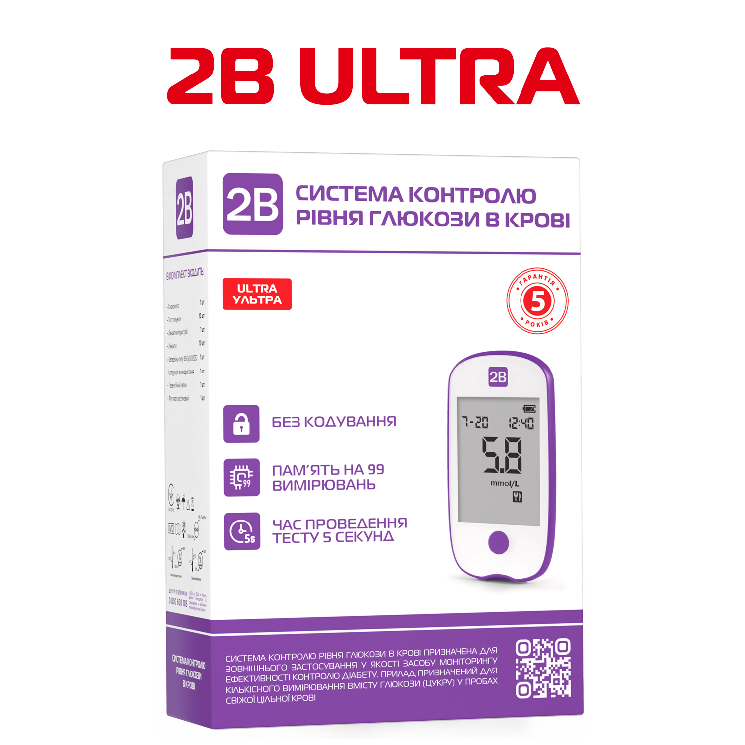 Глюкометр 2B ULTRA призначений для регулярного моніторингу рівня глюкози в крові, що дозволяє людям з діабетом своєчасно виявляти відхилення від норми та ефективно контролювати свій стан. Завдяки цьому приладу можна оцінювати вплив харчування, фізичної активності та лікування на рівень цукру, що допомагає запобігати ускладненням і підтримувати здоров'я на належному рівні. Прилад має широкий функціонал, високу точність, зручний і легкий у використанні.