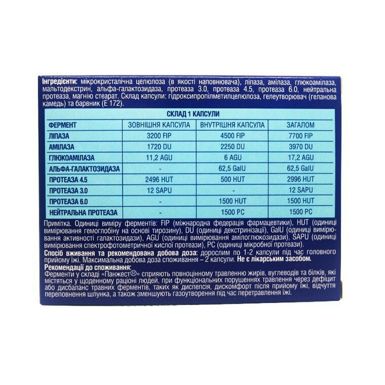 | Ліпаза | 3200 FIP | 4500 FIP | 7700 FIP |