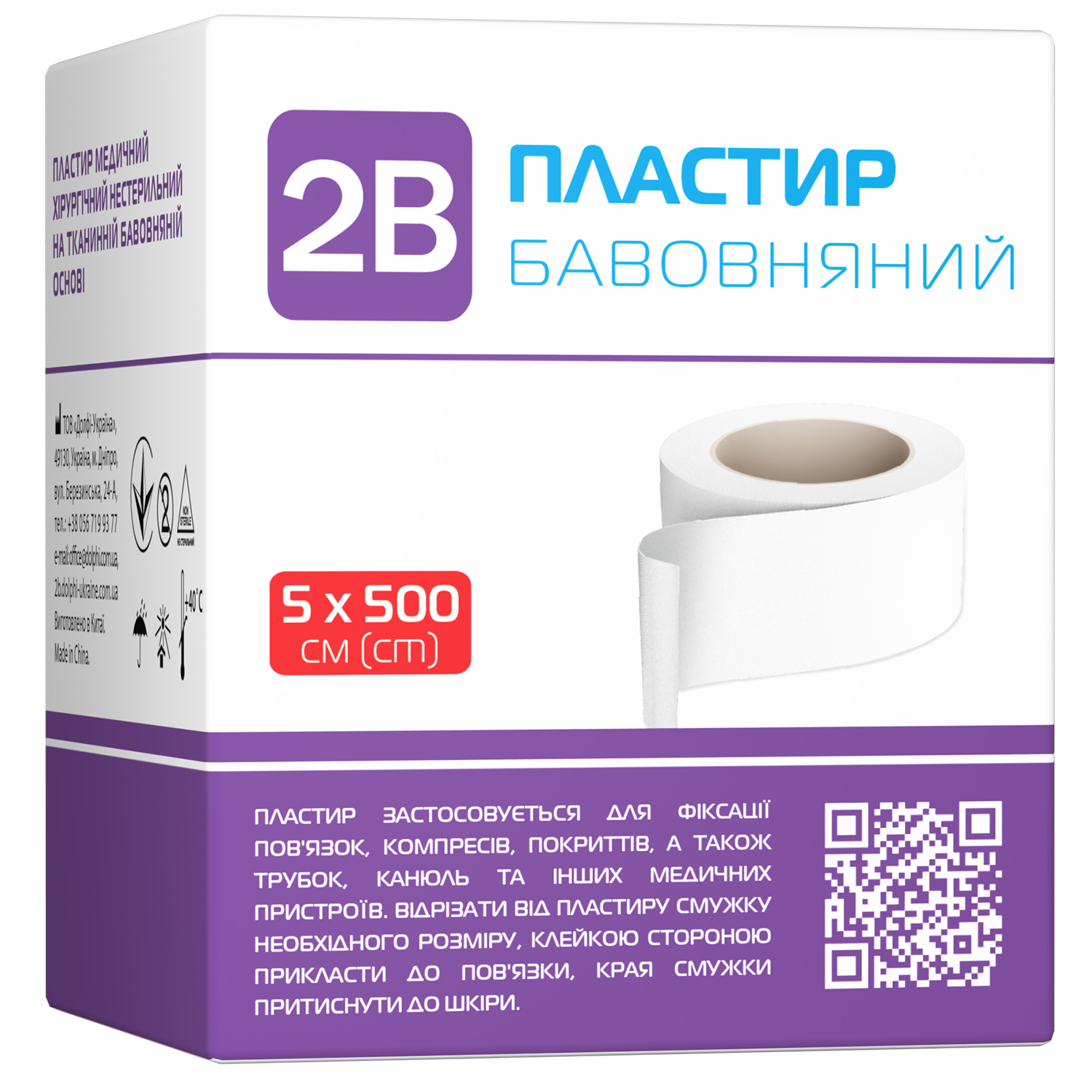 Пластир медичний 2В хірургічний на бавовняній основі, білий 5 см х 5 м, 1 шт