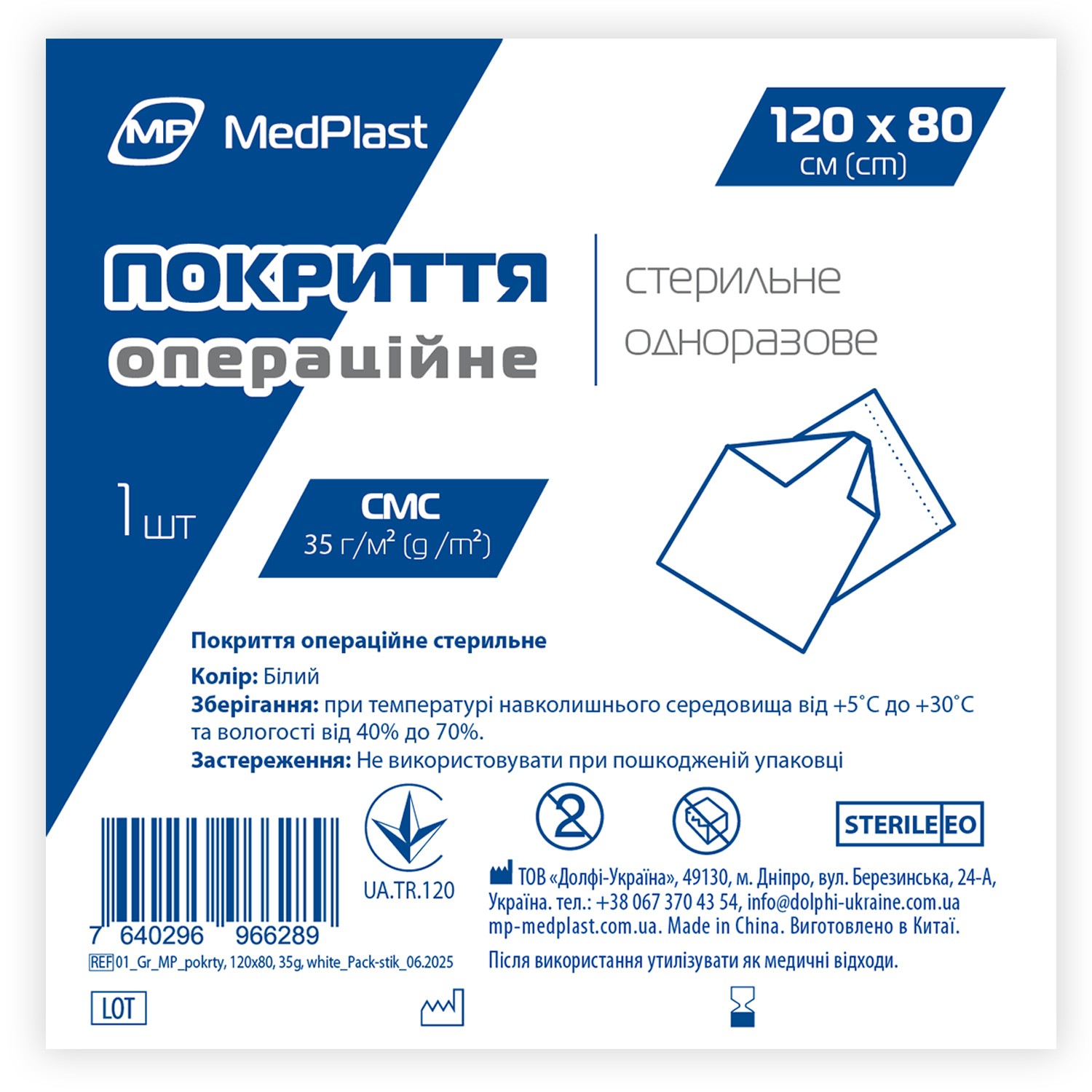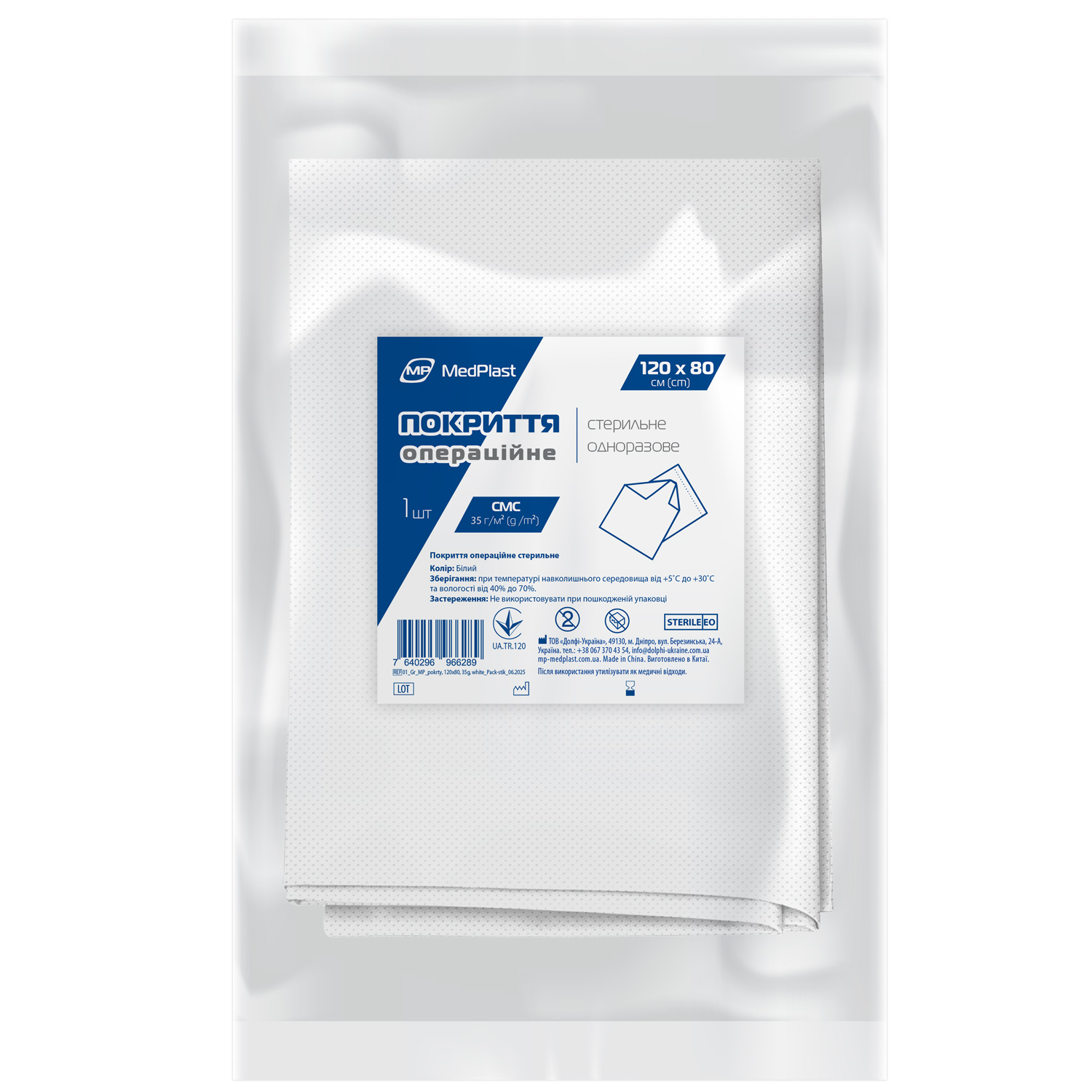 Покриття стерильне MP MedPlast 120 см*80 см, СМС 35 г/м², білий