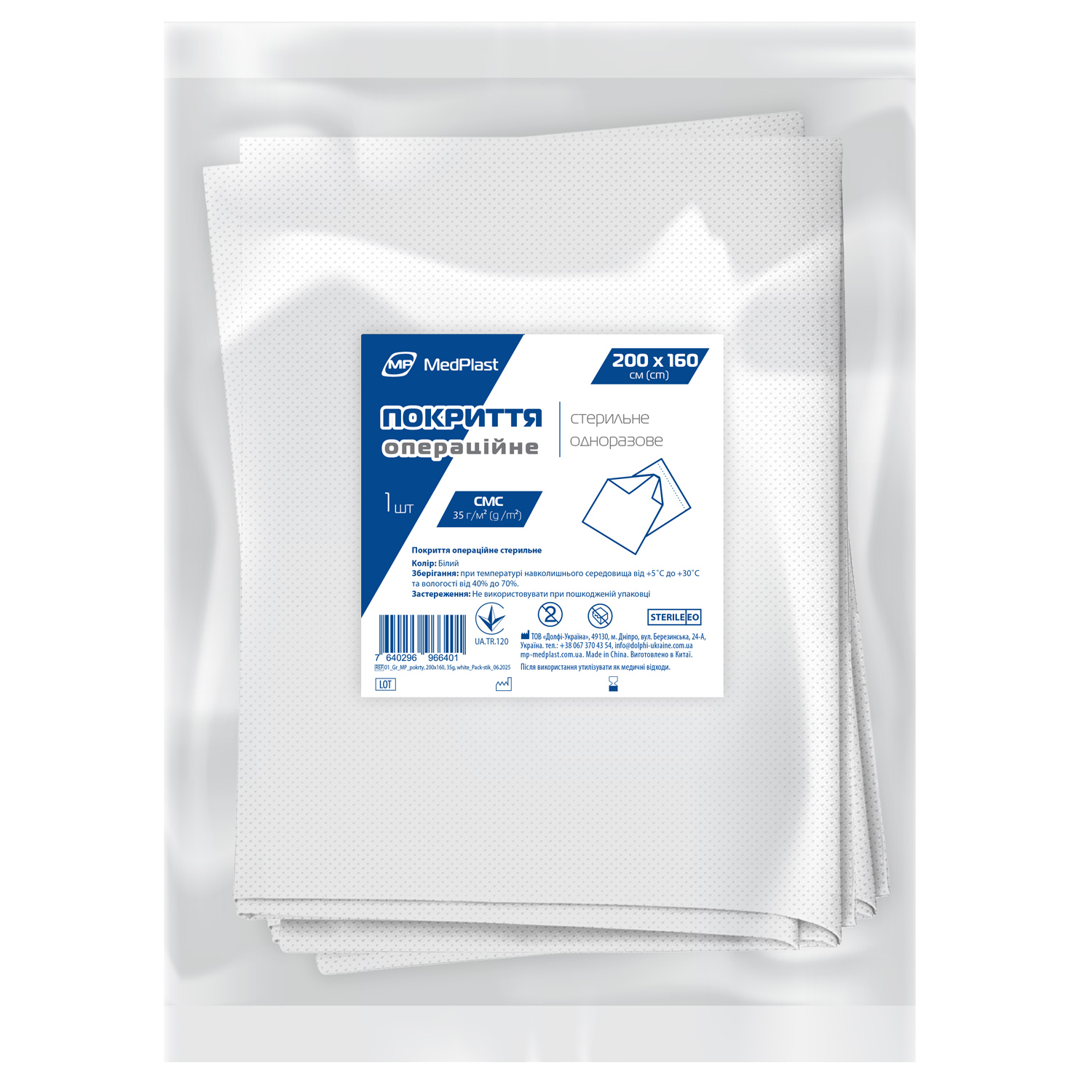 Покриття операційне стерильне MP MedPlast 200 см*160 см, СМС 35 г/м², білий