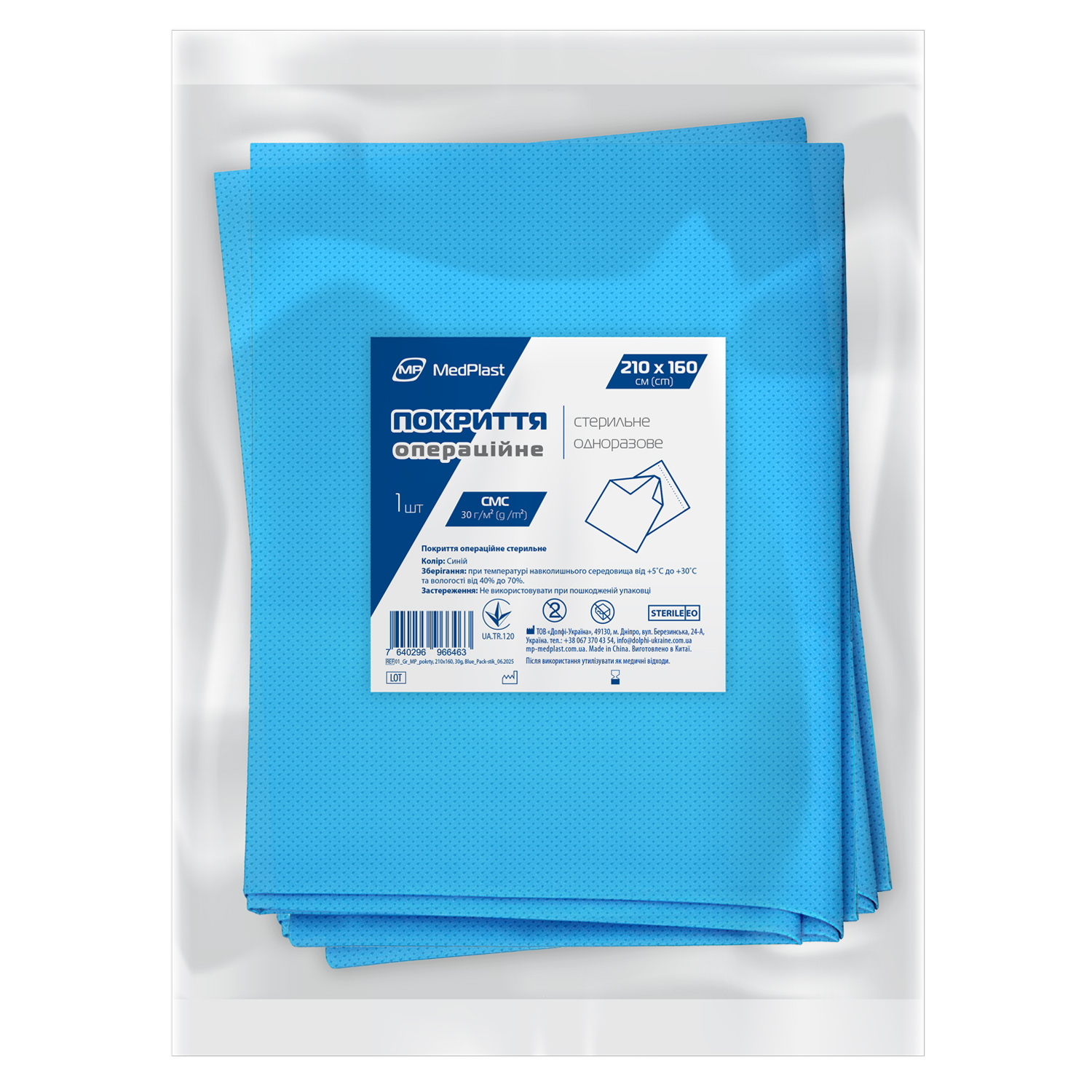 Покриття операційне стерильне MP MedPlast 210 см*160 см, СМС 30 г/м², синій