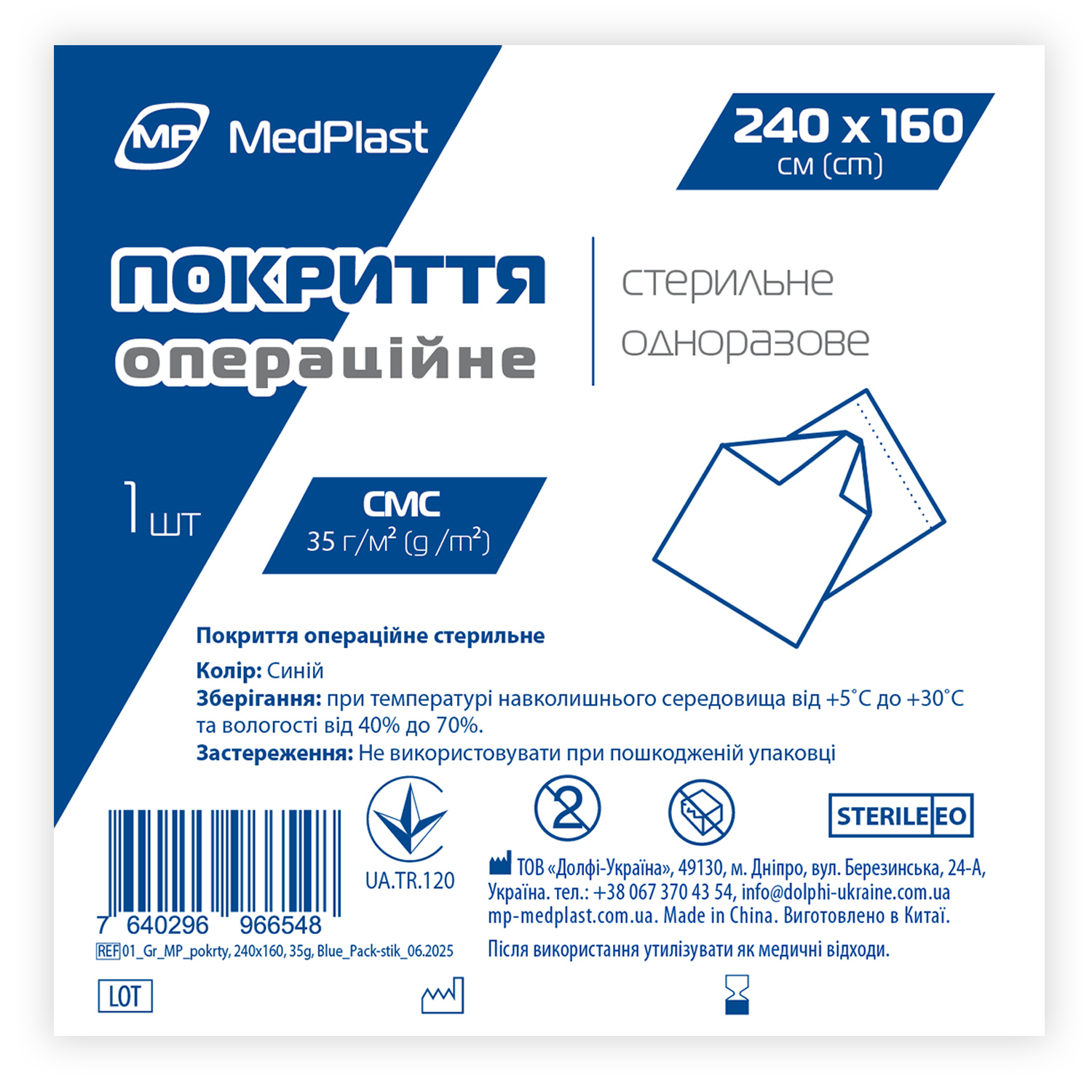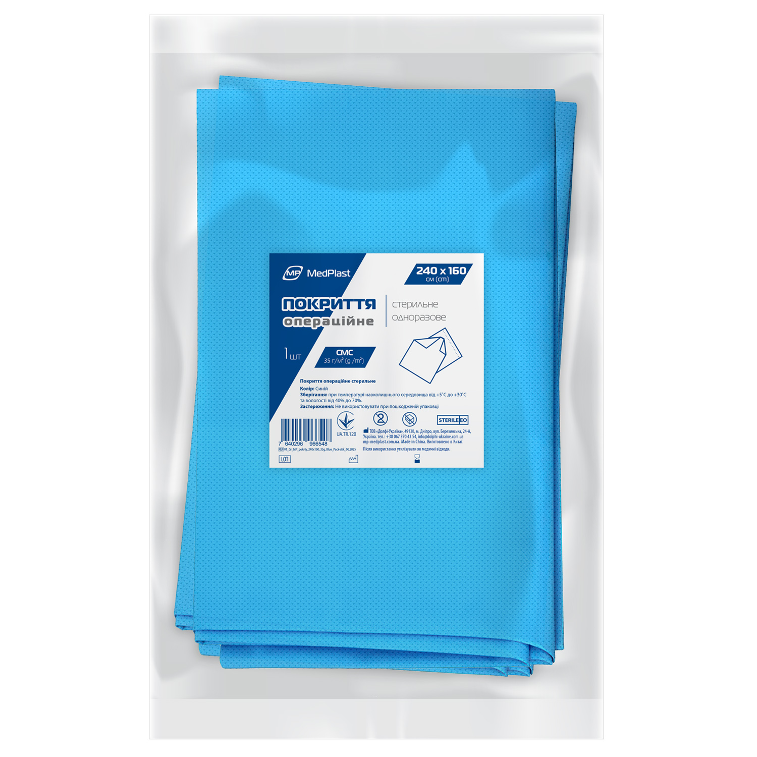 Покриття операційне стерильне MP MedPlast 240 см*160 см, СМС 35 г/м², синій