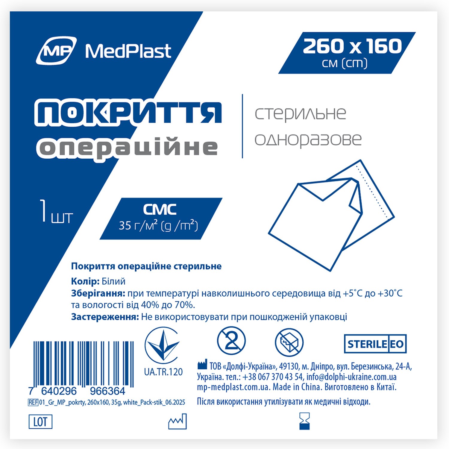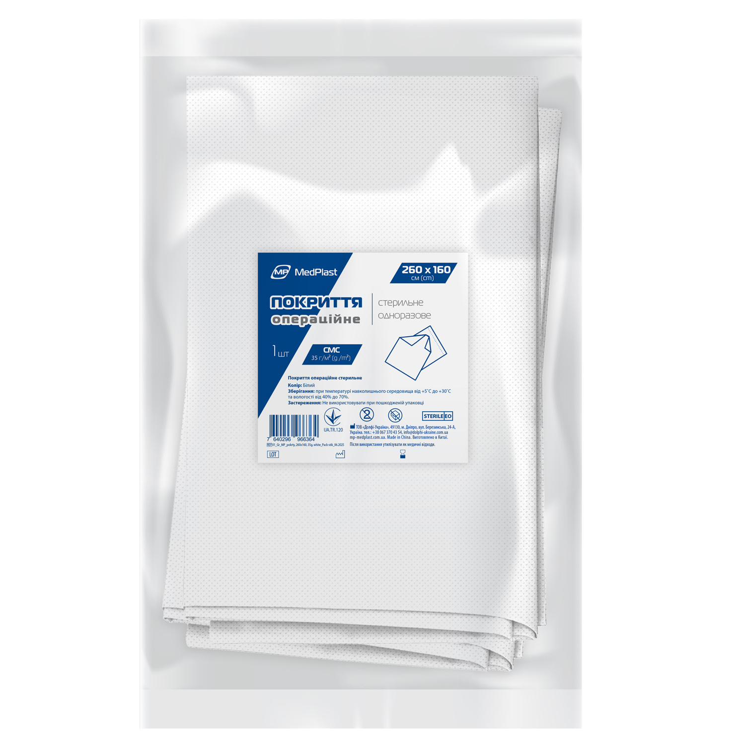 Покриття операційне стерильне MP MedPlast 260 см*160 см, СМС 35 г/м², білий