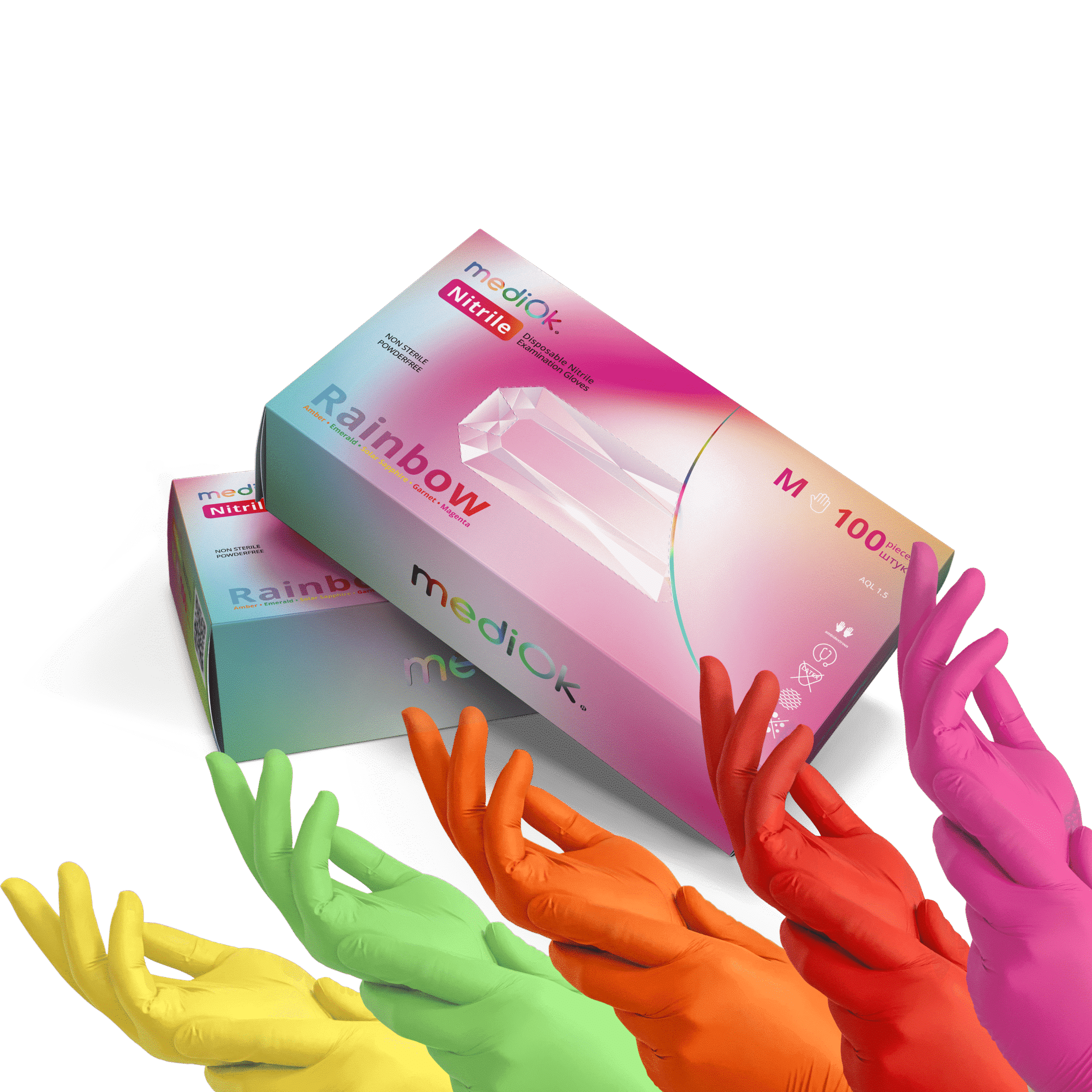 Перчатки нитриловые, нестерильные, mediOk RAINBOW, без пудры, микс пяти цветов, размер M, 100 шт