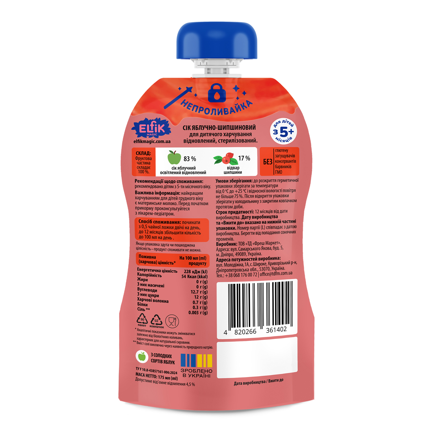 Сік яблучно-шипшиновий для дитячого харчування відновлений, стерилізований.