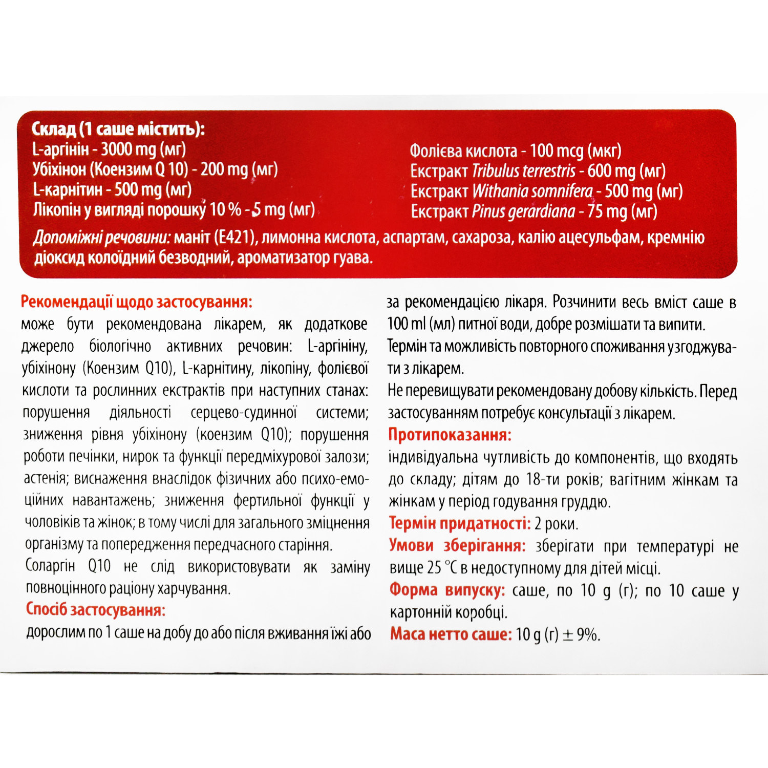 Соларгін Q10 порошок в саше для підтримки серцево-судинної системи, покращення роботи печінки, нирок та передміхурової залози, 10 шт