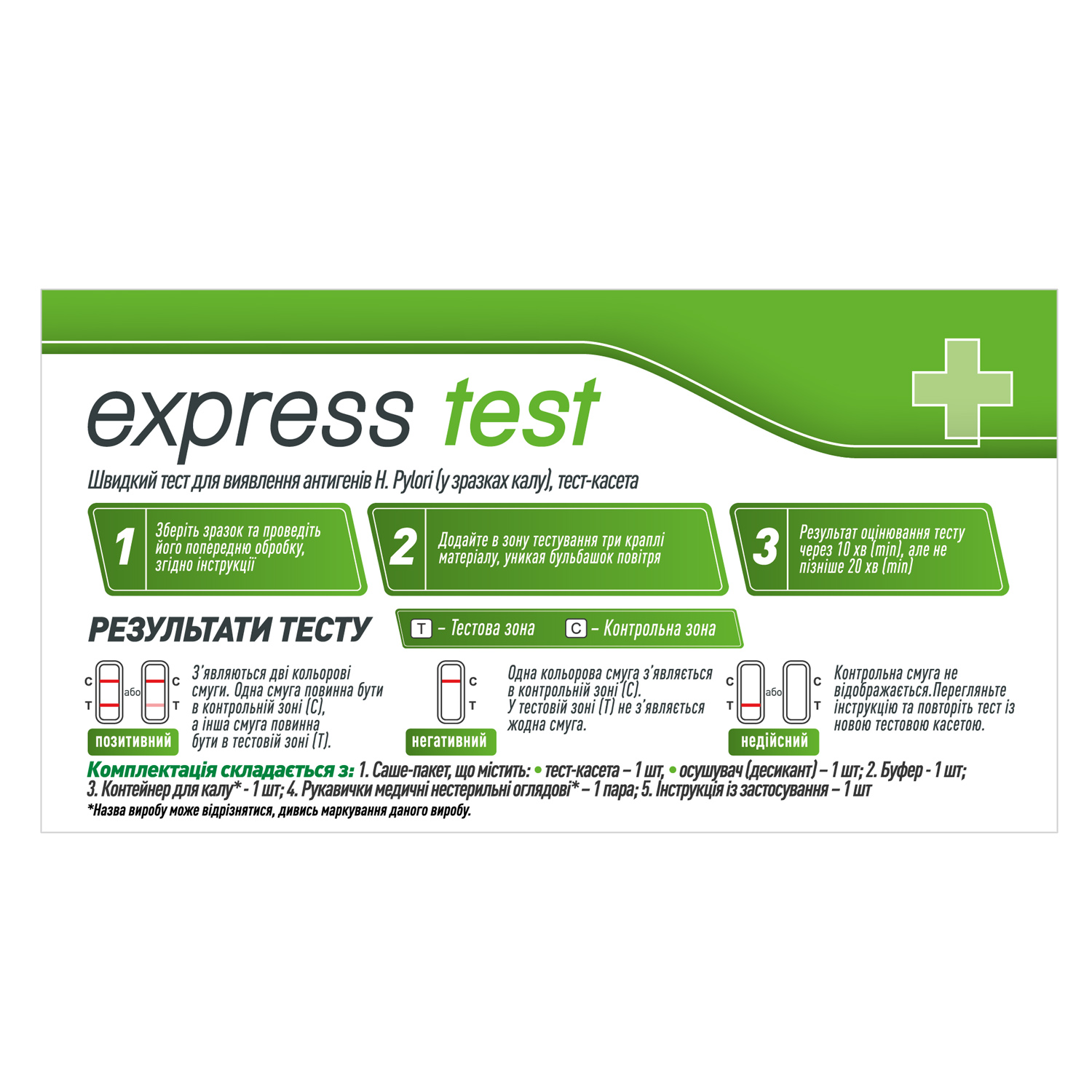 Швидкий тест для виявлення антигенів H. Рylori Express Test, це тест-касета на швидкий хроматографічний імунологічний аналіз для якісного виявлення антигенів H. Pylori у фекаліях, що допомагає діагностувати інфекцію.