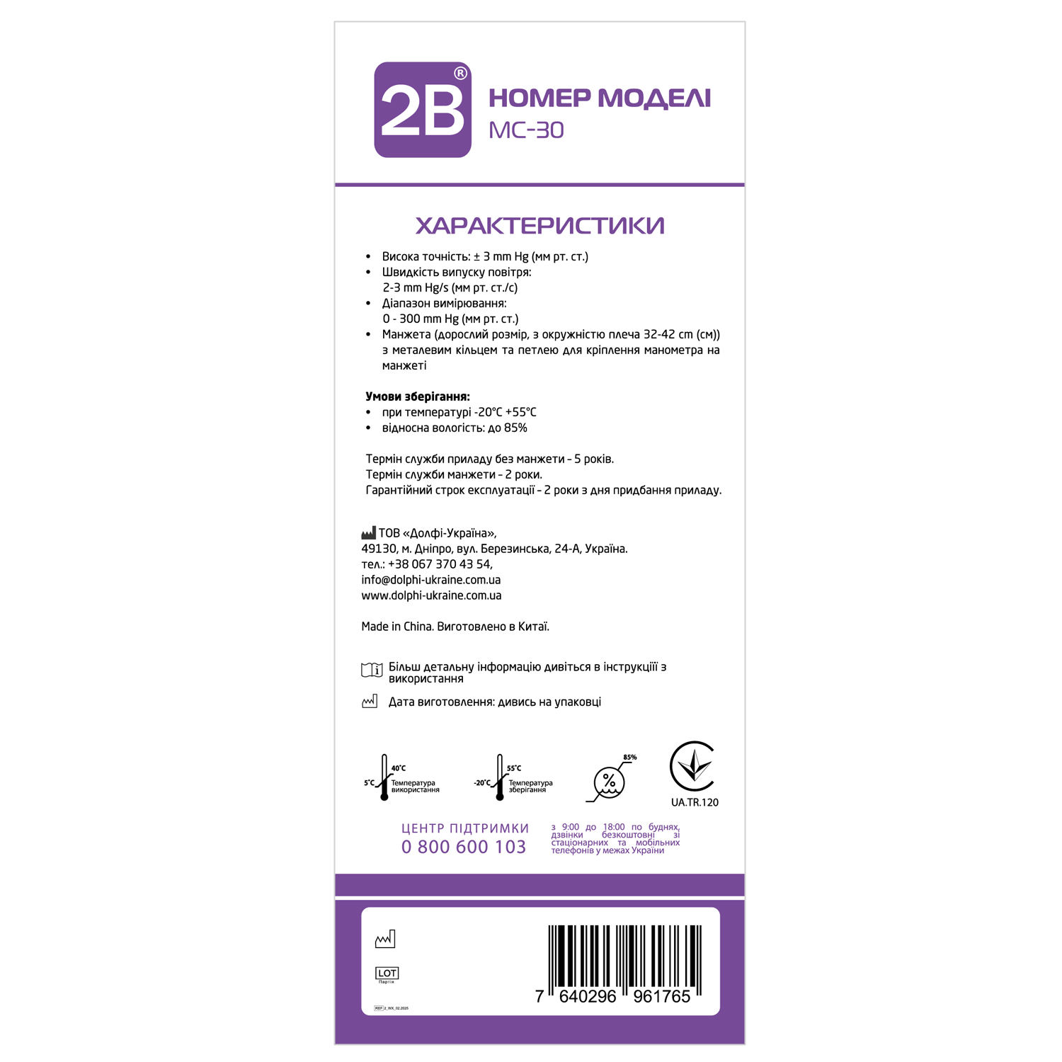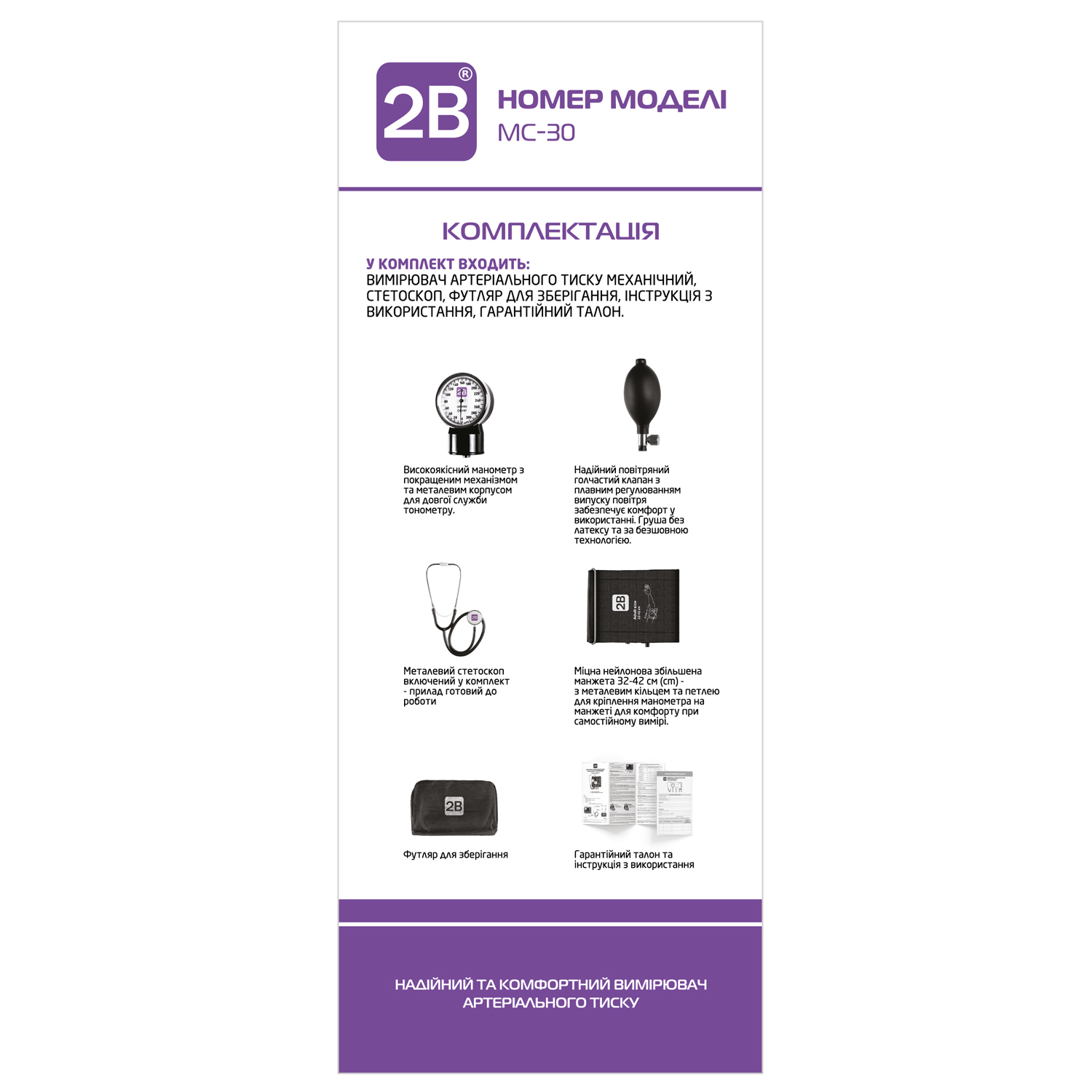 Вимірювач артеріального тиску механічний, МС-30 зі стетоскопом виготовлений з надійних матеріалів високої якості, пройшов клінічні випробування, має високу точність вимірювань та відповідає європейським та українським стандартам. Розроблений з урахуванням потреби професіоналів, має чудові експлуатаційні характеристики та рекомендується для вимірювання артеріального тиску в клінічних та домашніх умовах. Завдяки тому, що виконаний з якісних та довговічних матеріалів, прослужить довгі роки, навіть при частому використанні.