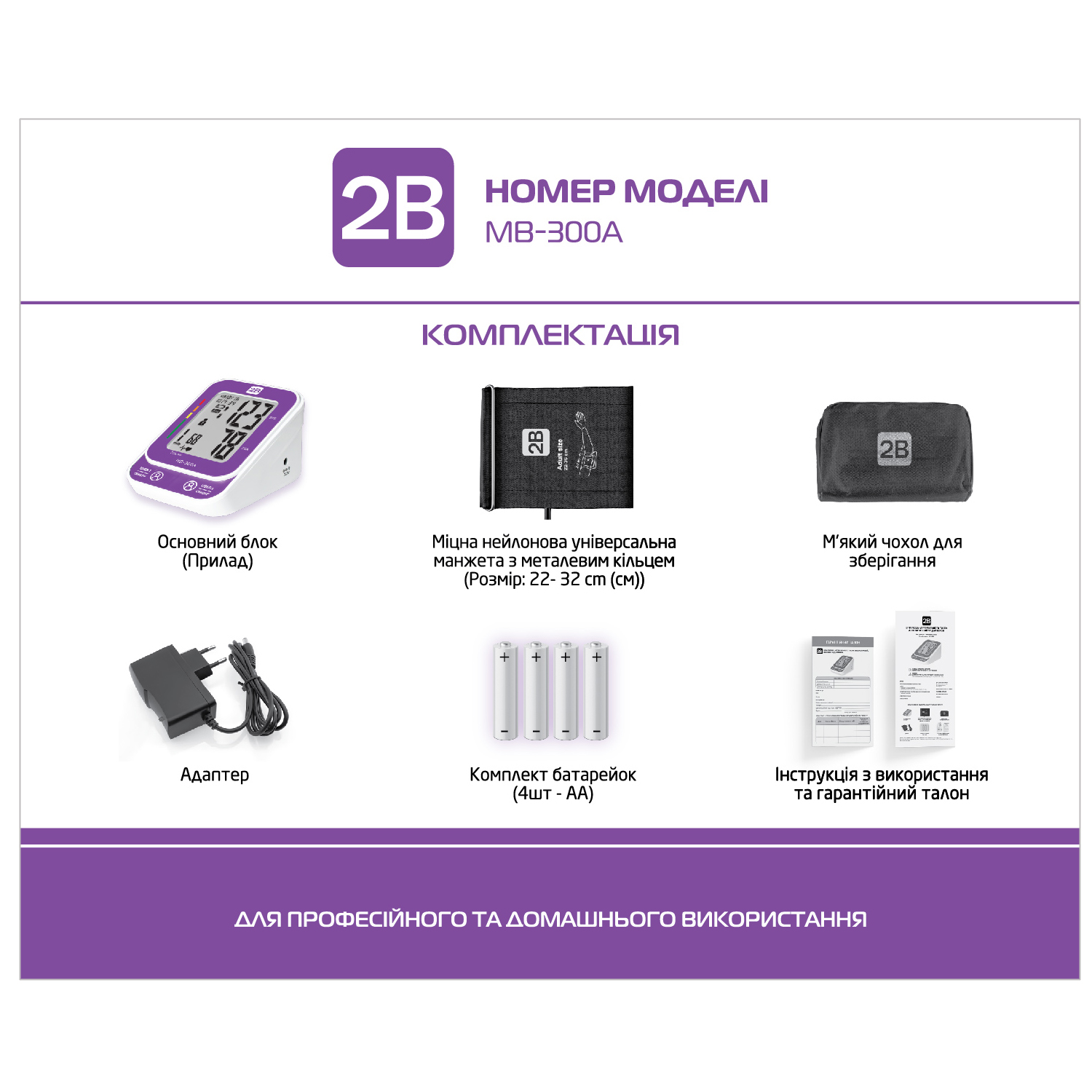 Вимірювач артеріального тиску автоматичний МВ-300А, з адаптером виготовлений з надійних матеріалів високої якості, пройшов клінічні випробування та рекомендований для людей віком від 18 років. Він має високу точність вимірів та відповідає європейським та українським стандартам. Розроблений з урахуванням потреби професіоналів, має відмінні експлуатаційні характеристики та рекомендується для вимірювання у клінічних та домашніх умовах.