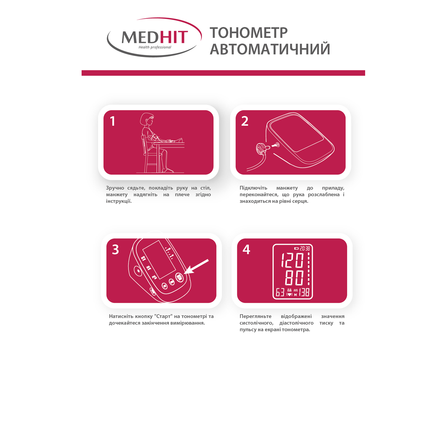 - Універсальна манжета розміром 22–42 см з міткою як правильно надягати