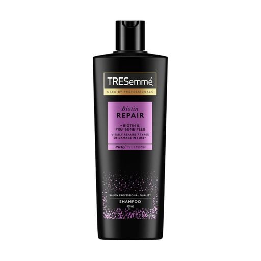Шампунь TRESemmé Biotin Repair розроблений для інтенсивного відновлення пошкодженого волосся. Його формула містить біотин і комплекс Pro-Bond, які допомагають відновити внутрішню структуру волосся та зробити його міцнішим.